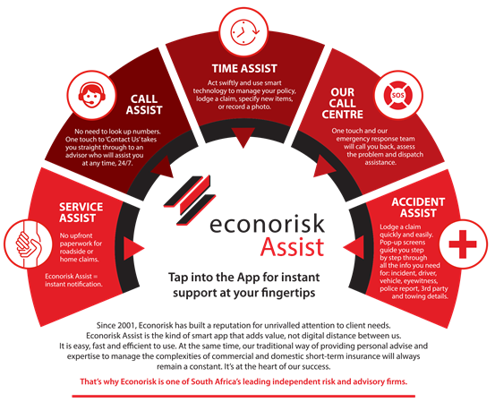 Econorisk Assist is the kind of smart app that adds value, not digital distance. It is fast, easy, and efficient to use - while our traditional way of providing personal advice and expertise to manage the complexities of your personal insurance will always remain a constant.